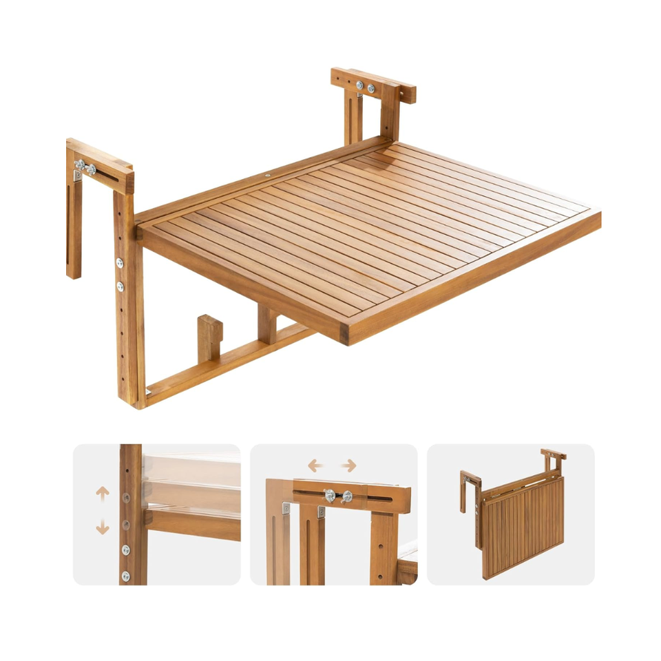 Outdoor Furniture Table Modern Acacia Foldable Durable Easy to Carry Minh Phuoc Furniture Balcony Hanging Table