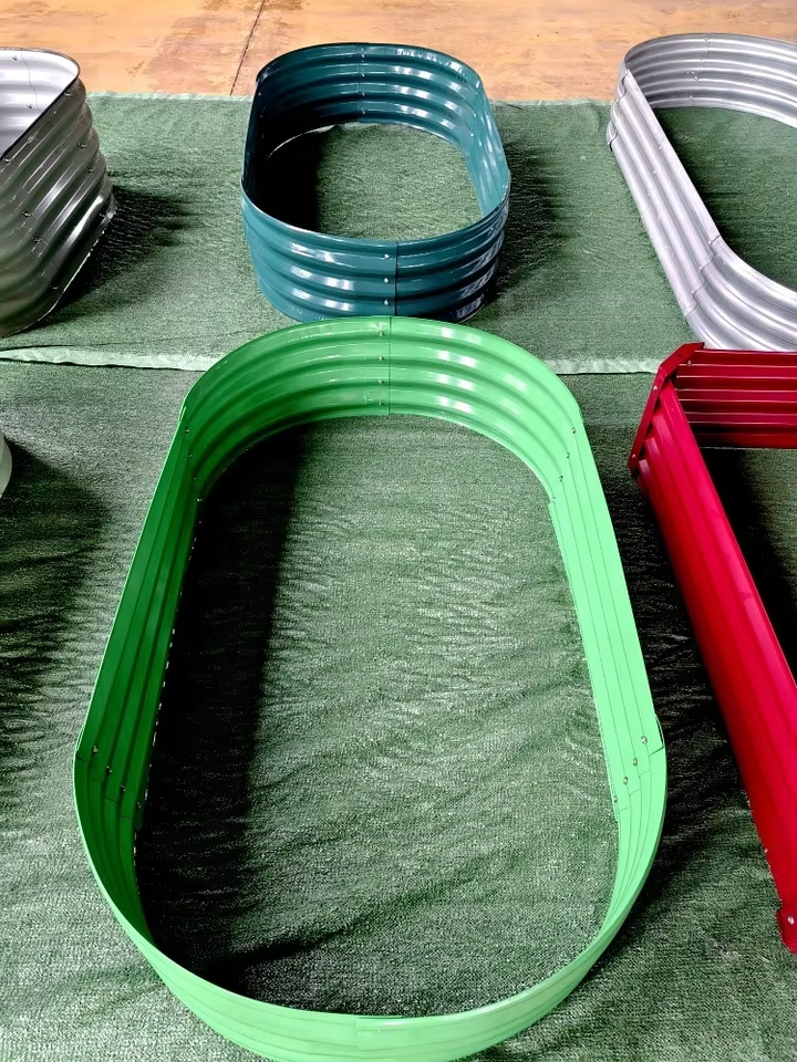 Outdoor Galvanized Planter Raised Garden Boxes Edging Modular Oval Metal Eco-Friendly Home Flower Bed