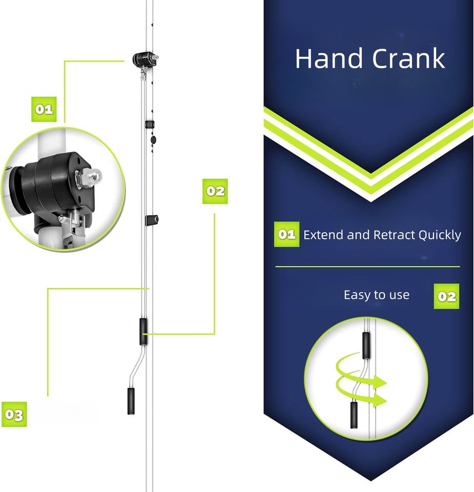 Outdoor Garden Clamp Awning Balcony Door Terrace Application Hand Crank Height Adjustable White Aluminum Steel Frame Polyester