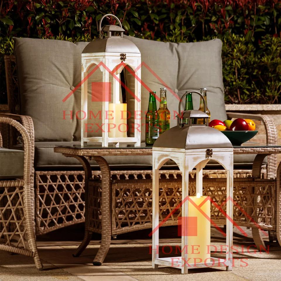 Outdoor Garden Decorative Antique White Wooden Hanging Lantern Light Best Seller Tall Wooden Lantern for Wedding Decoration