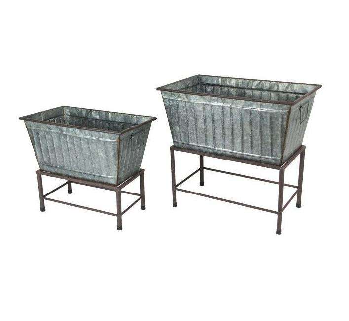 Outdoor Garden Supplies Rustic Steel Planters Rounded Galvanized Planters Huge Garden Tubs and Flower Garden Ware