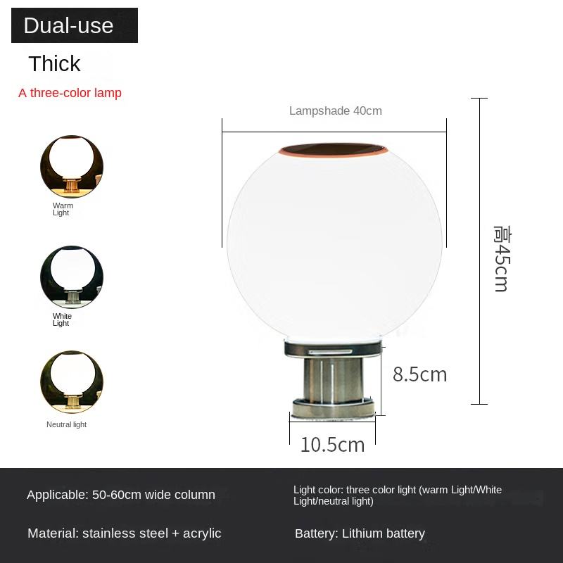 Outdoor Garden Waterproof Column Lamp, Lantern Villa Fence Column Lamp, Acrylic Ball Courtyard Landscape Gate, Door Column Lamp