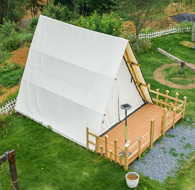 Outdoor Glamping Luxury Prefab House Living Resort Triangle Prefab Wood House Villa Canvas Safari Tent for Hotel Resort Camping