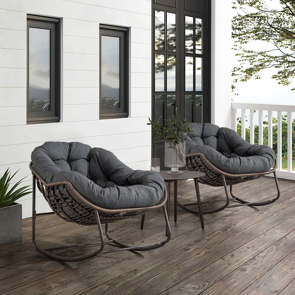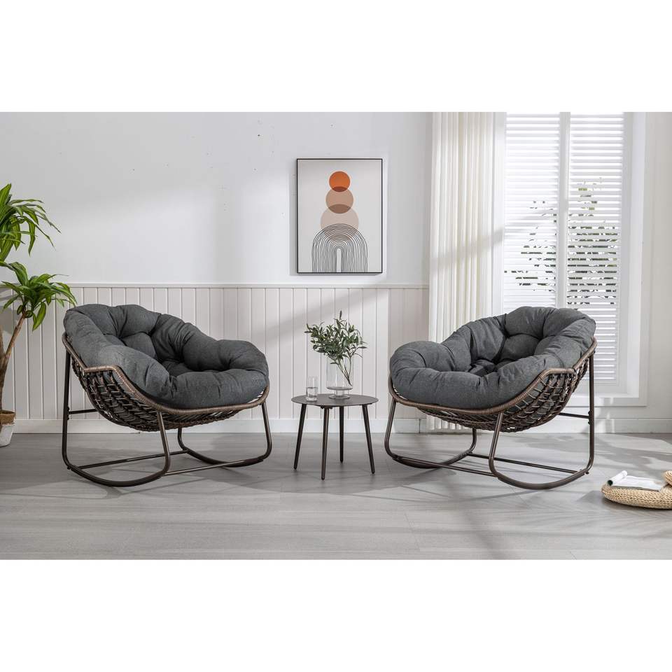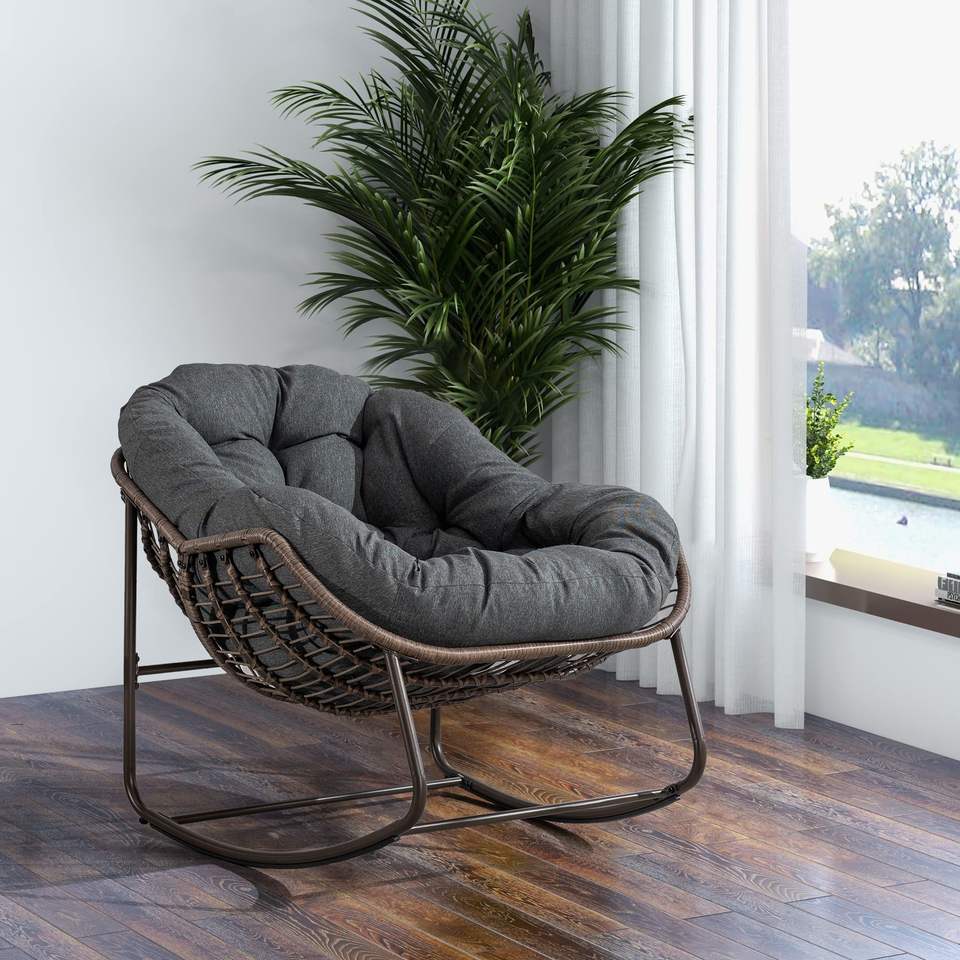 Outdoor Grey Rattan Rocking Recliner Chair with Padded Cushion for Porch Living Room Garden