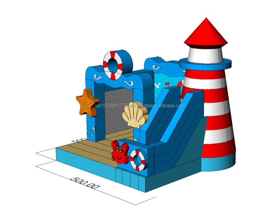 Outdoor High quality durable PVC 5*5m ocean theme Inflatable castle with slide children's bouncing house On Sale