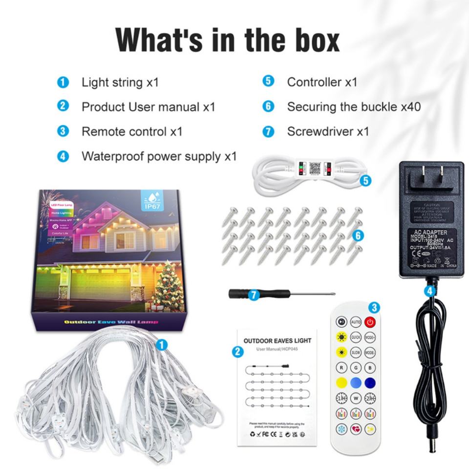 Outdoor IP67 Waterproof RGB LED String Lights Electric for House Roof Christmas Halloween Garden Decor Outdoor LED Eaves Lights