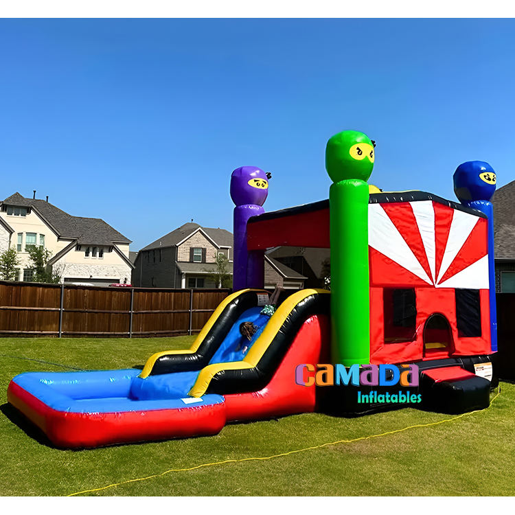 Outdoor Inflatable Bouncer Jumping Jumper Double Lane Bouncing Slide Combo with Round Swimming Pool