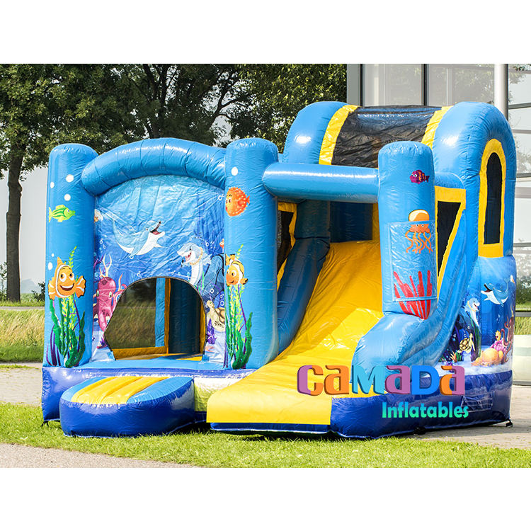 Outdoor Interactive 3D Shark Front Slide Combi Jumping Inflatable Slide Boucner Inflatable Trampoline Blower