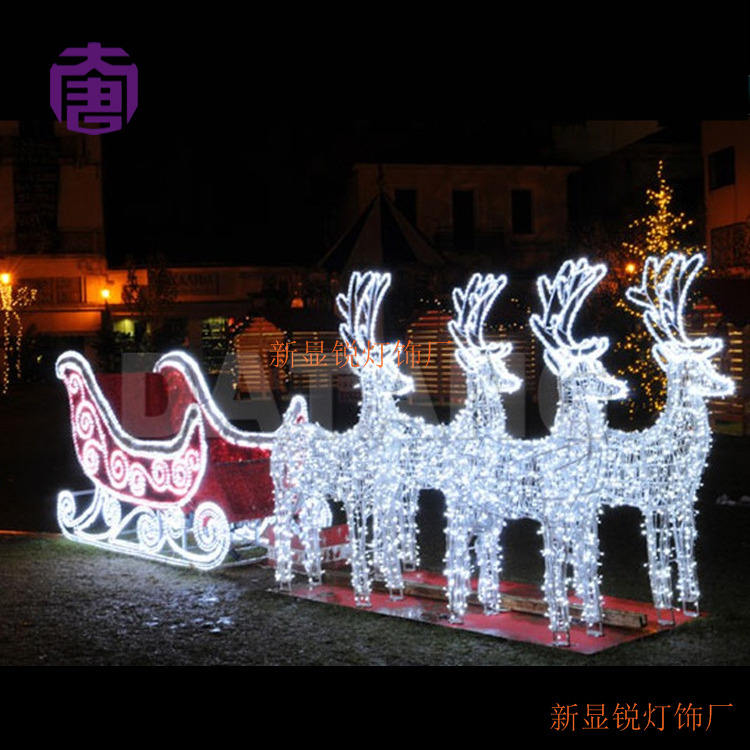 Outdoor Ip65 Large 3d Santa Sleigh Christmas Reindeer Led Lights Customizable Color Easy Installation For Street Decoration