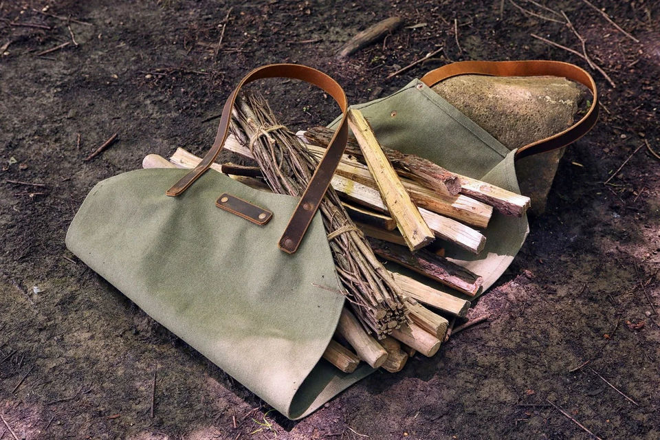 Outdoor Large-Capacity Wet Wax Wood Firewood Storage Bag Waxed Waterproof Canvas Logging Finishing Bag Polyester Lining