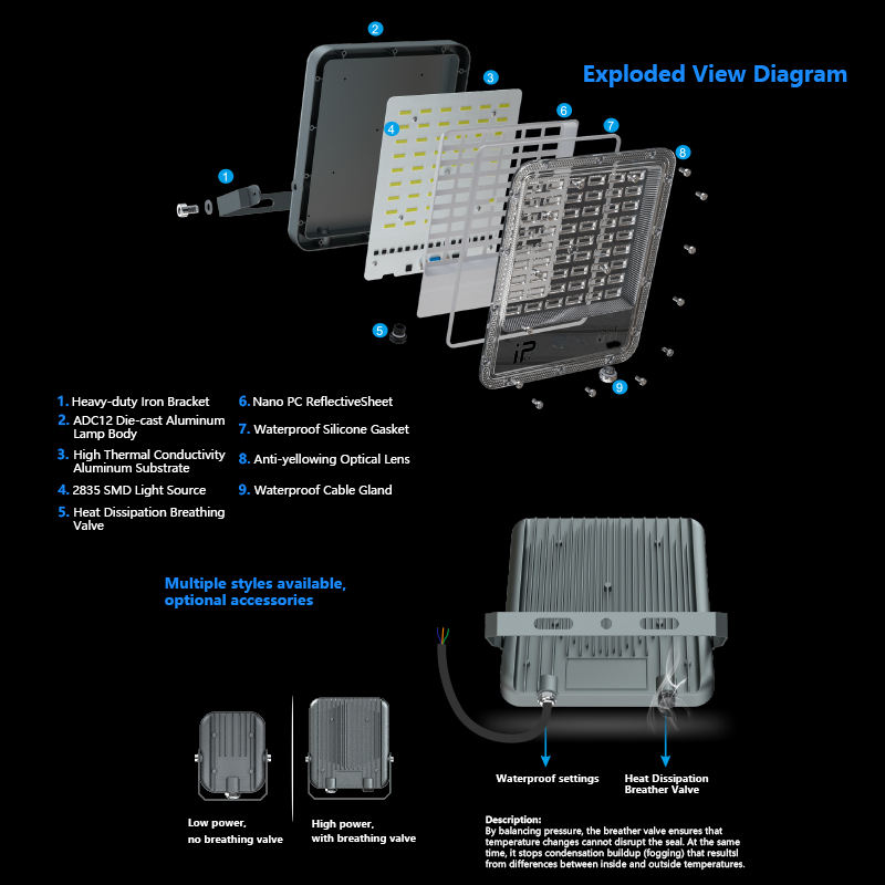 Outdoor Lighting Waterproof IP66 100W 150W 200W 300W Aluminium Body LED Flood Lights for Pathway Garden Stadium