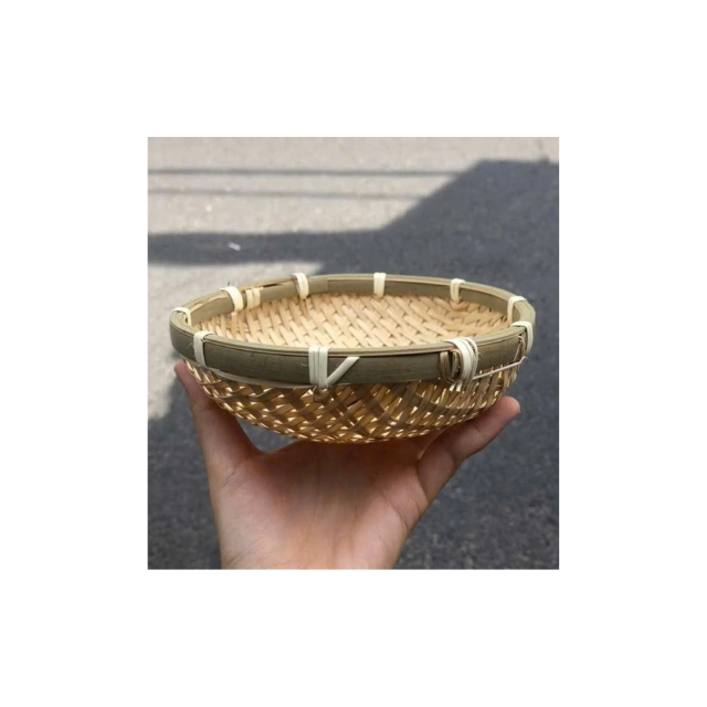 Outdoor Market Style Bamboo Shopping Basket with Strong Weave Ergonomic Handle, Reusable Eco Friendly Tote