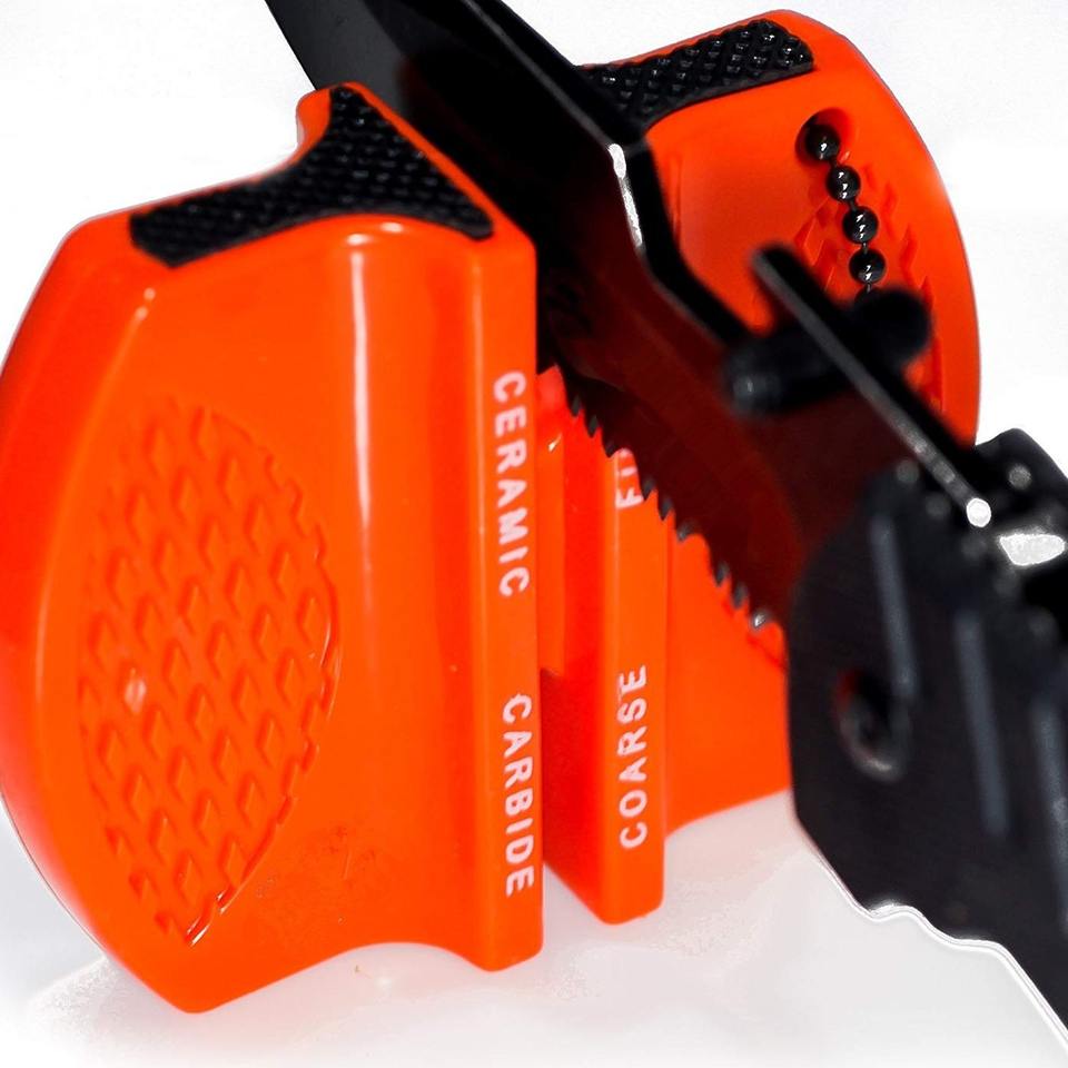 Outdoor Mini Knife Sharpener With Tungsten Carbide Ceramic Stone Easy To Carry Keychain Size For Mountaineering And Camping