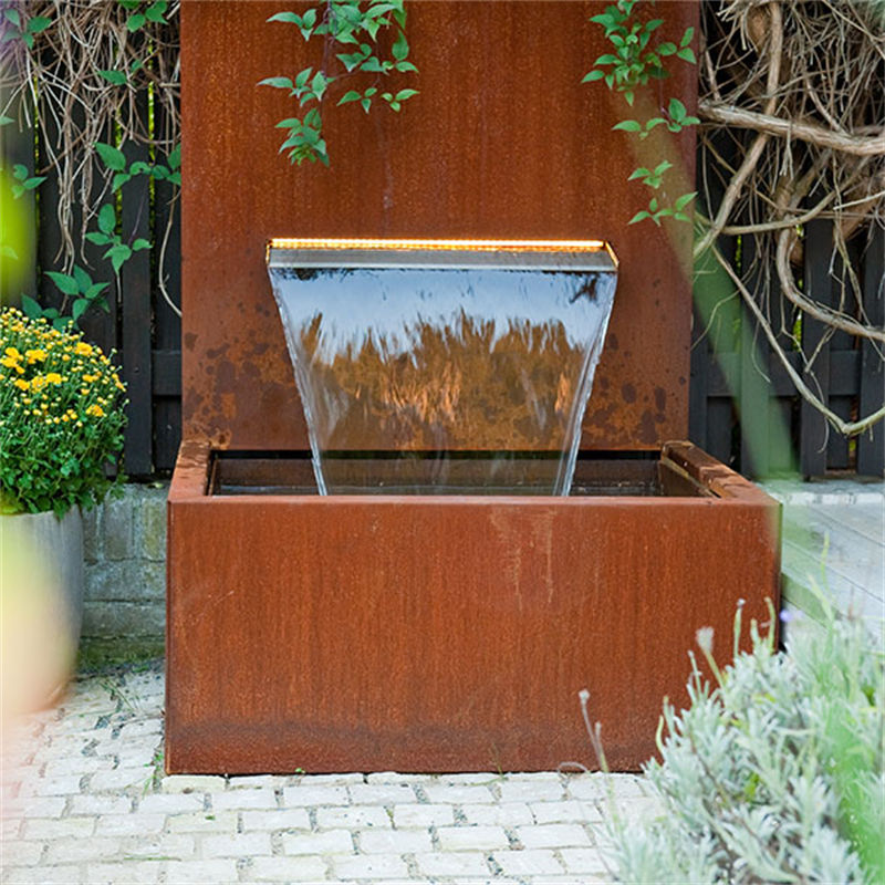 Outdoor Modern Corten Steel Weather Resistant Easy Install Water Fountain Garden Waterfall Water Feature for Home Landscaping