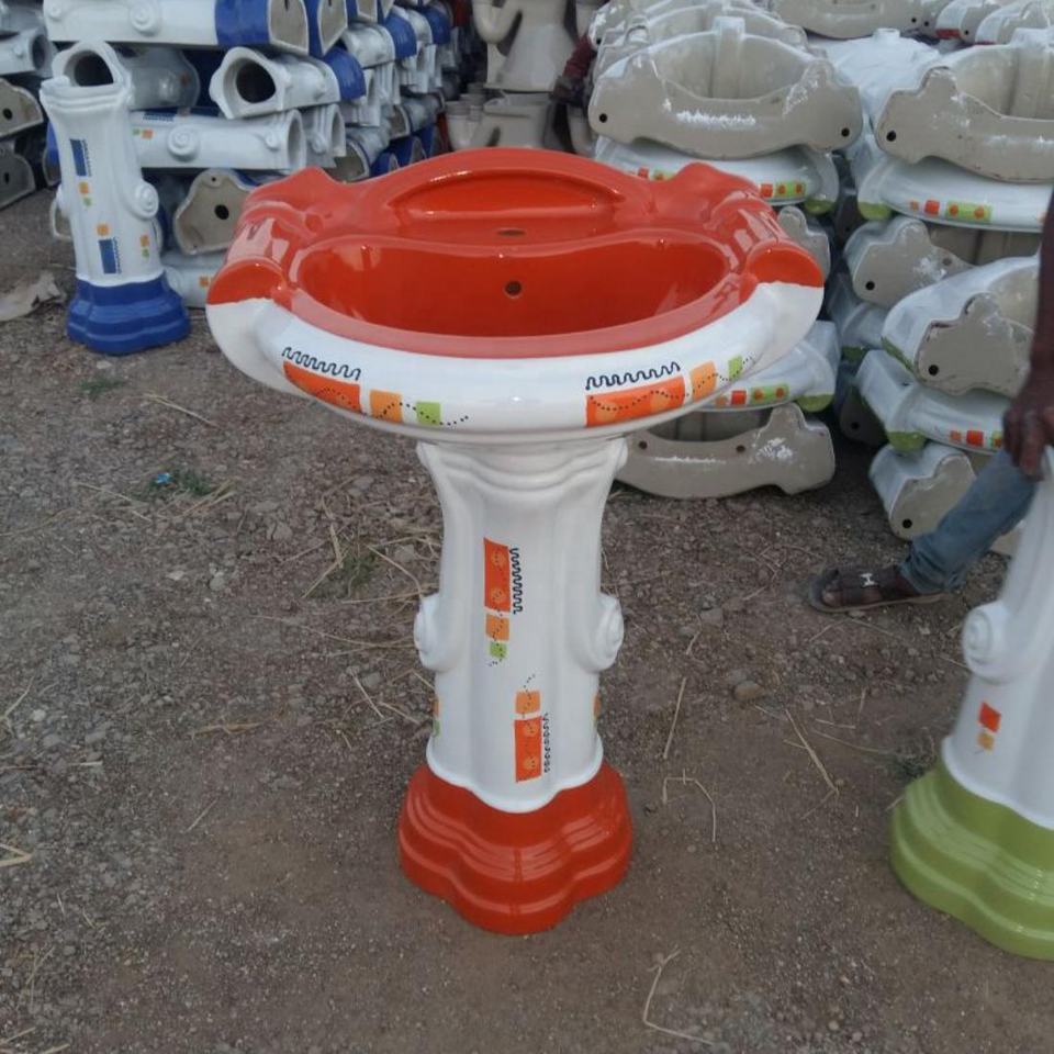 Outdoor Modern Glaze Ceramic Pedestal Sink Bathroom Round Shape Washbasin