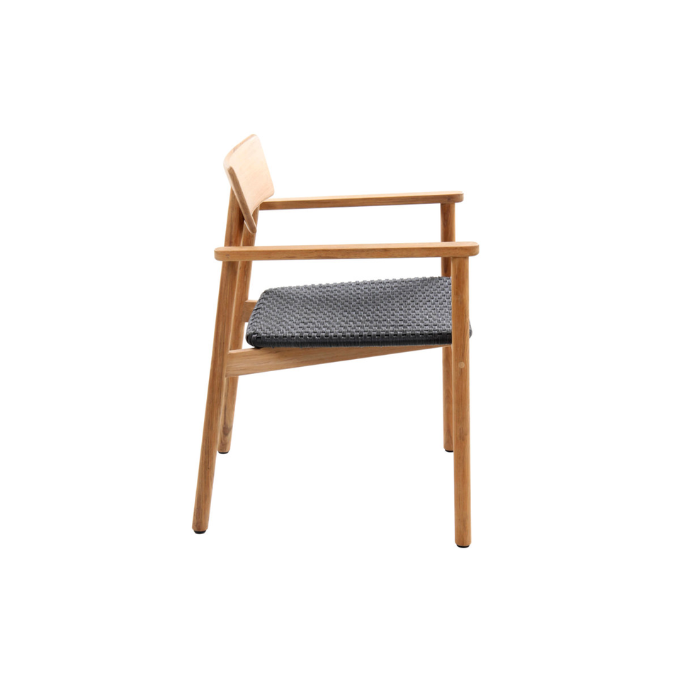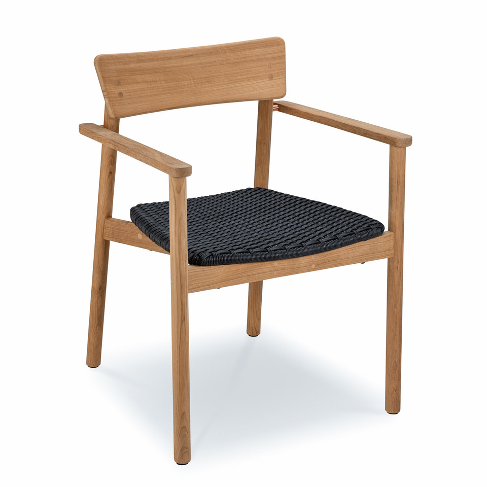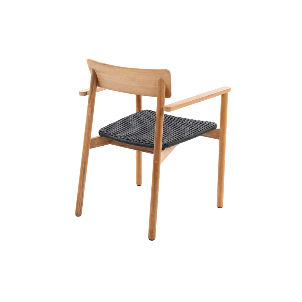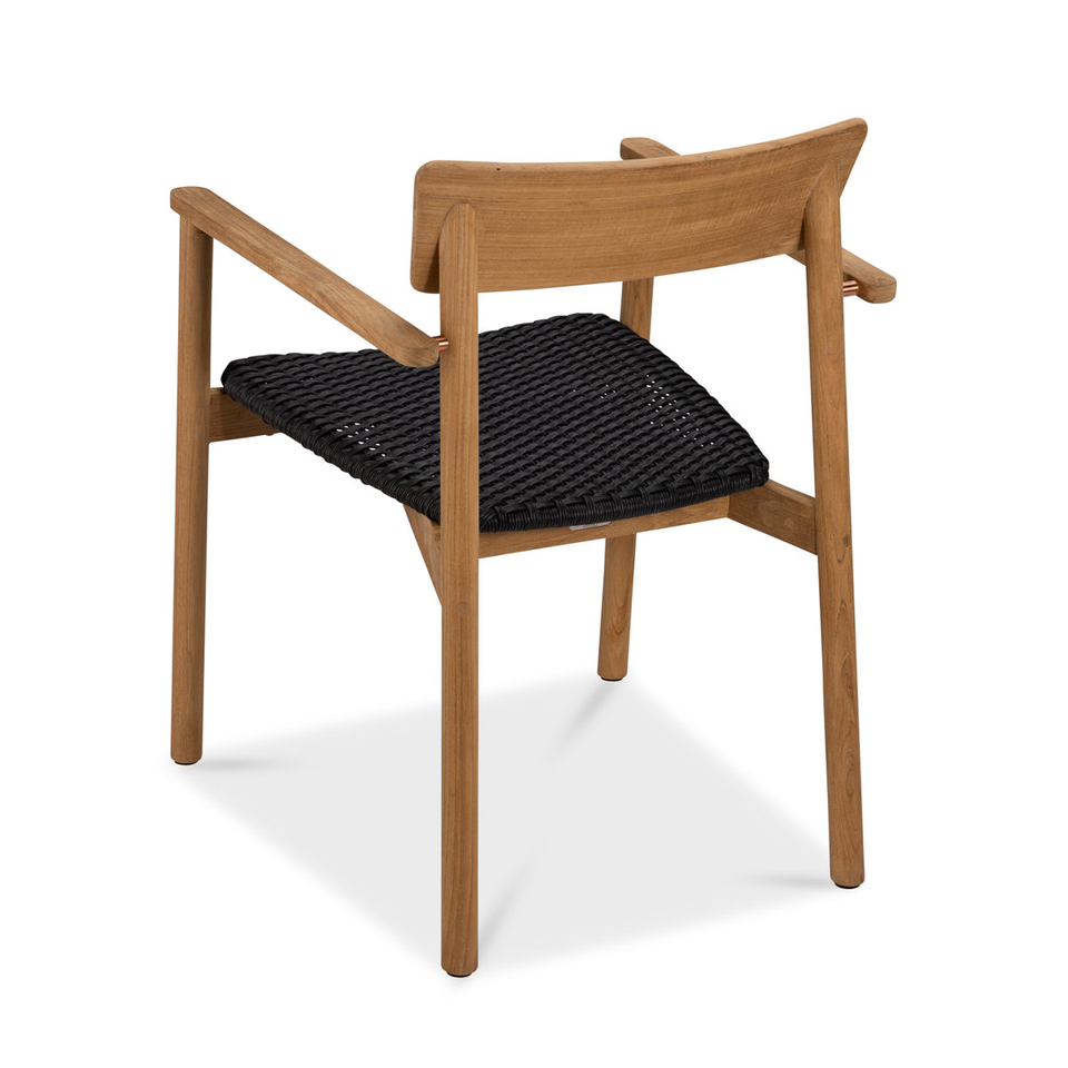 Outdoor Modern Solid Teak Wood Armchair with Durable Black Woven Seat for Villa and Living Room
