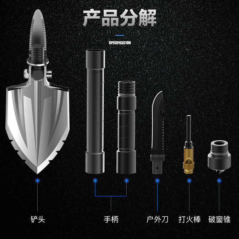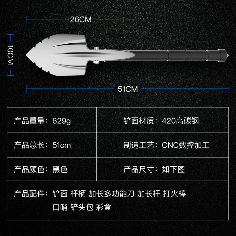 Outdoor Multi Functional Entrenching Shovel Set 51Cm Carbon Steel Survival Tool With Pickaxe And Knife For Camping Hiking