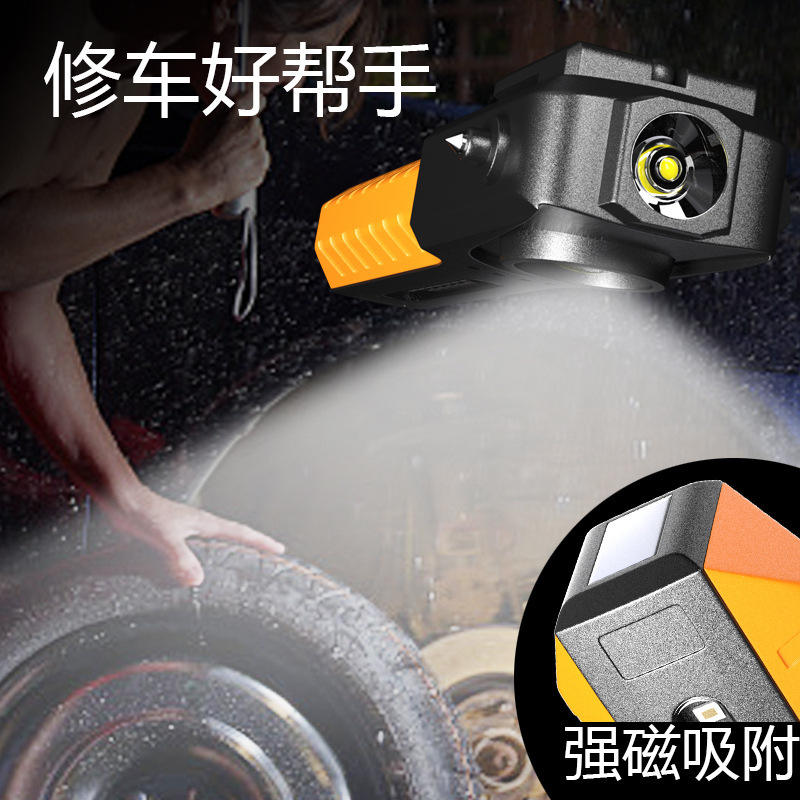Outdoor Multi Functional Flashlight Rechargeable Led Light Strong Magnetic Adsorption Window Breaker Hammer Orange Color