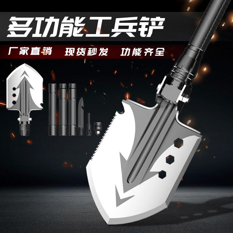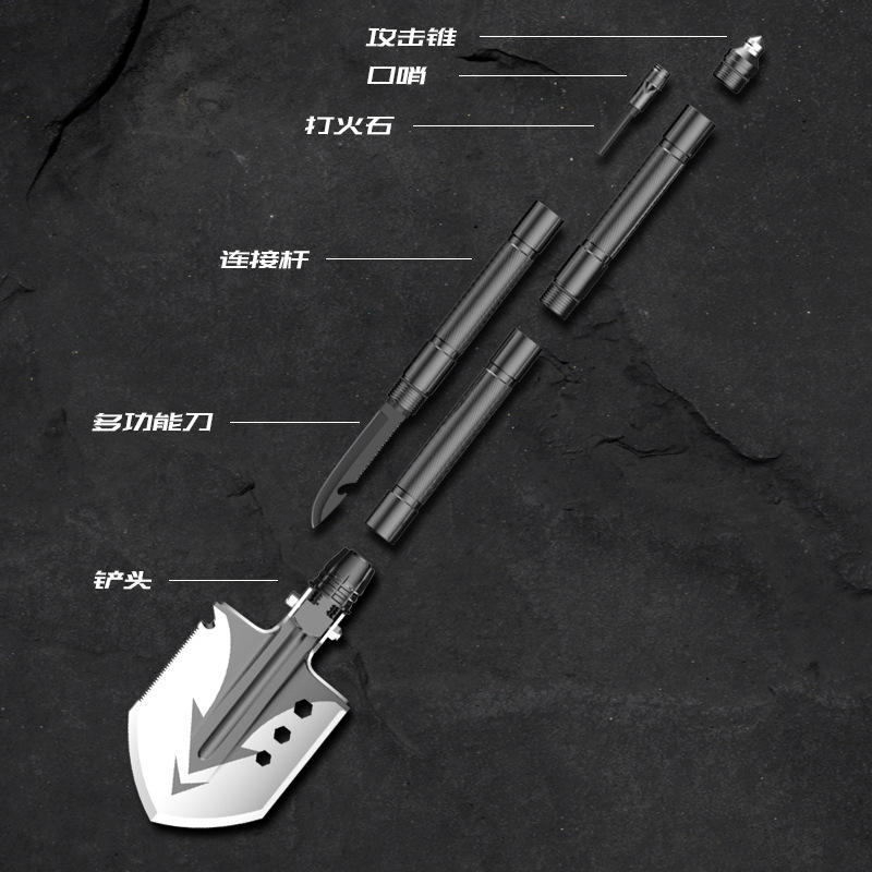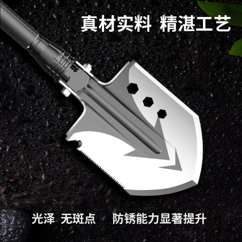 Outdoor Multifunctional Folding Shovel 13.5in Manganese Steel Aluminum Alloy D-Grip Handle Camping Survival Tool