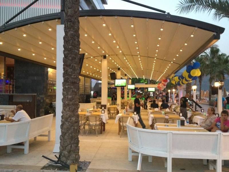 Outdoor Oval PVC Motorized Awning Retractable Roof with Led Ligthining Electrical Dimmable Aluminum Full Radius Pergola System