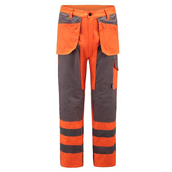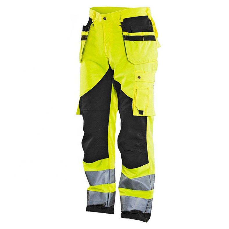 Men's Lightweight Hi Viz Safety Pants Outdoor Workwear with Reflective Tapes Patchwork Design Multi-Pockets Breathable Durable