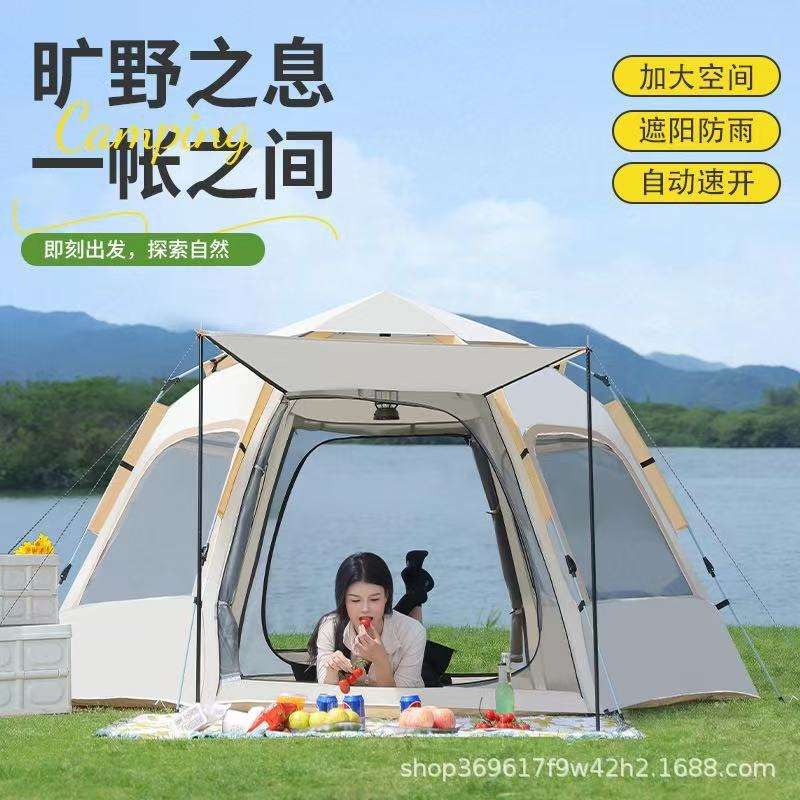 Outdoor Pop Up Tent Hexagonal 3-4 Person Double Layer Automatic Setup Quick Opening Family Camping Tent Oxford Cloth Waterproof