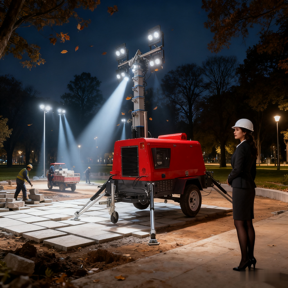 Outdoor Portable 5m 7m 8m 9m Handle Mast Small Power With Air-Cooled Diesel Gener Mobile Led Light Tower