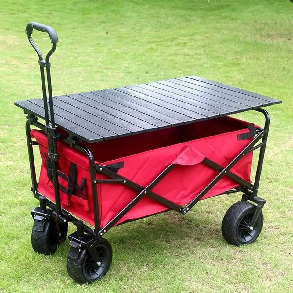 Outdoor Portable Camping 4-Wheel Heavy Duty Beach Folding Travel Cart with Platform Table All-Terrain 80kg Load Capacity