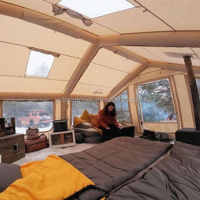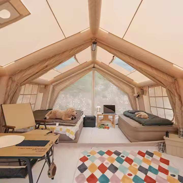 Outdoor Portable Camping Tents Family Waterproof Inflatable UV Protection Four-Season Double Layer Oxford Fabric Quick Setup