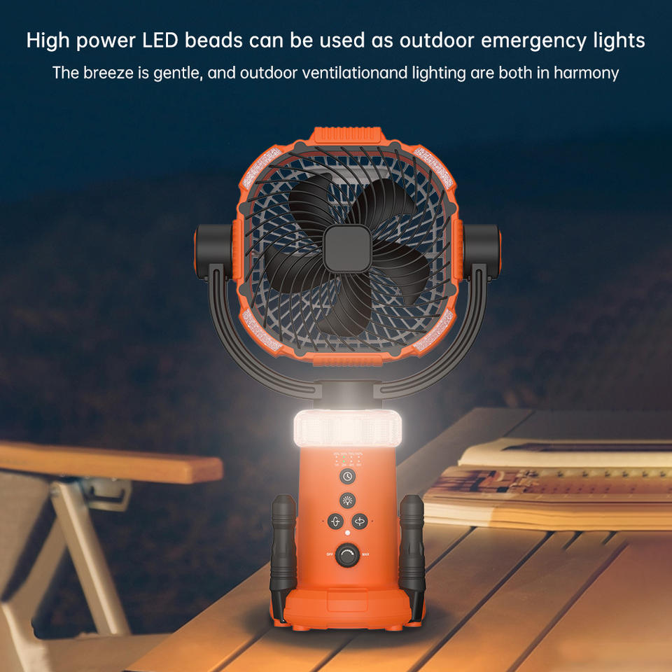 Outdoor Portable Fan With Oscillating Function Rechargeable Battery Triangular Stand Fan For Camping