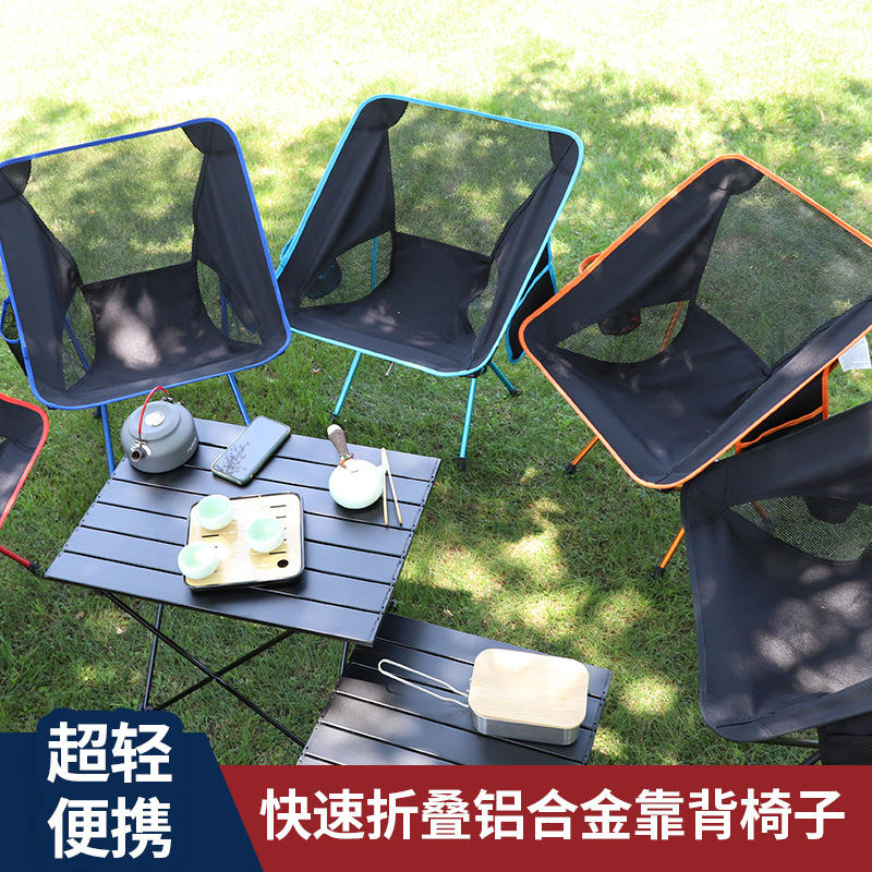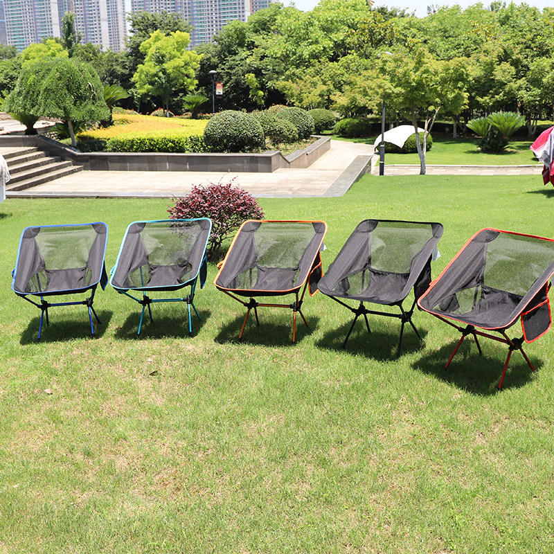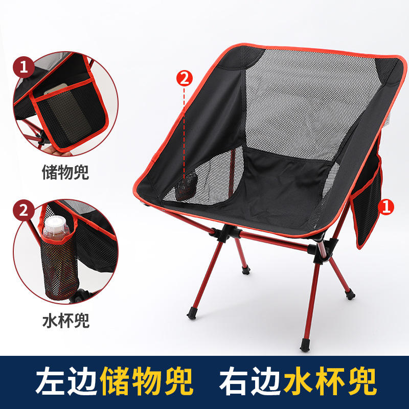 Outdoor Portable Folding Chair Aluminum Alloy Moon Chair For Camping Garden Fishing Barbecue With Side Pockets 38x56x67cm