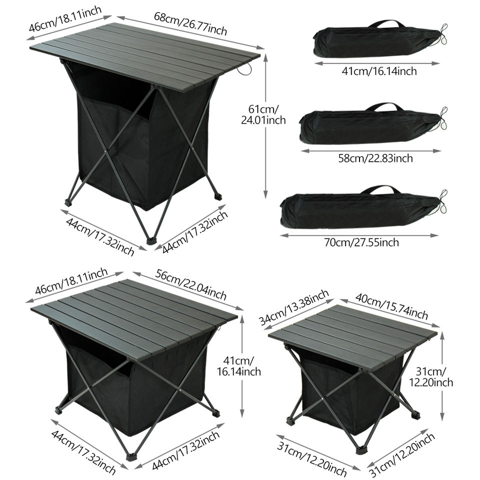 Outdoor Portable Lightweight Picnic Travel Hiking Collapsible Small Compact Camping Table With Oxford Storage