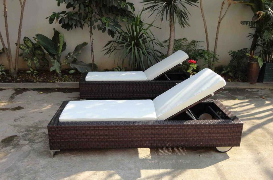 Outdoor Reclining Wicker Rattan Chaise, Beach Pool Yard Porch Adjustable Backrest Lounger Chair, Beige