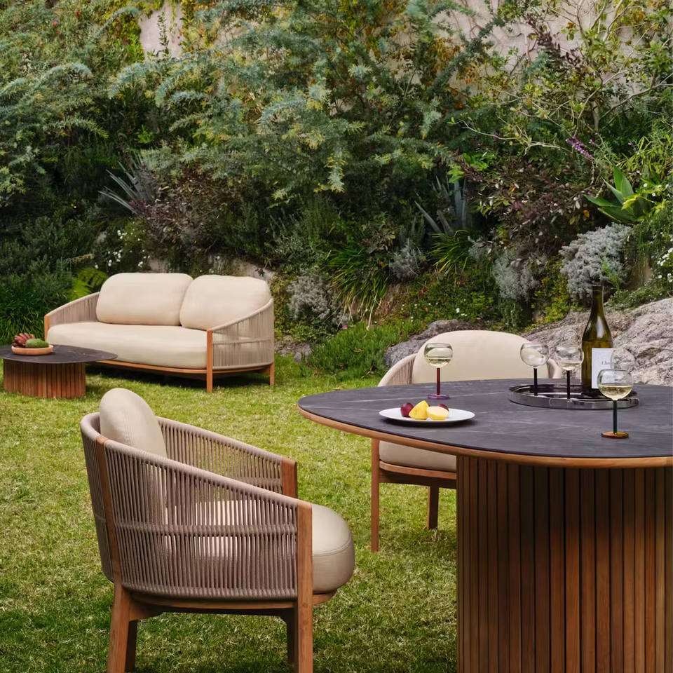 Outdoor Round Dining Tables Wood Teak Garden Marble-Tia