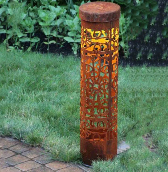 Outdoor Rust-colored Metal Art Deco Bollard Light-Waterproof & Weather Resistant