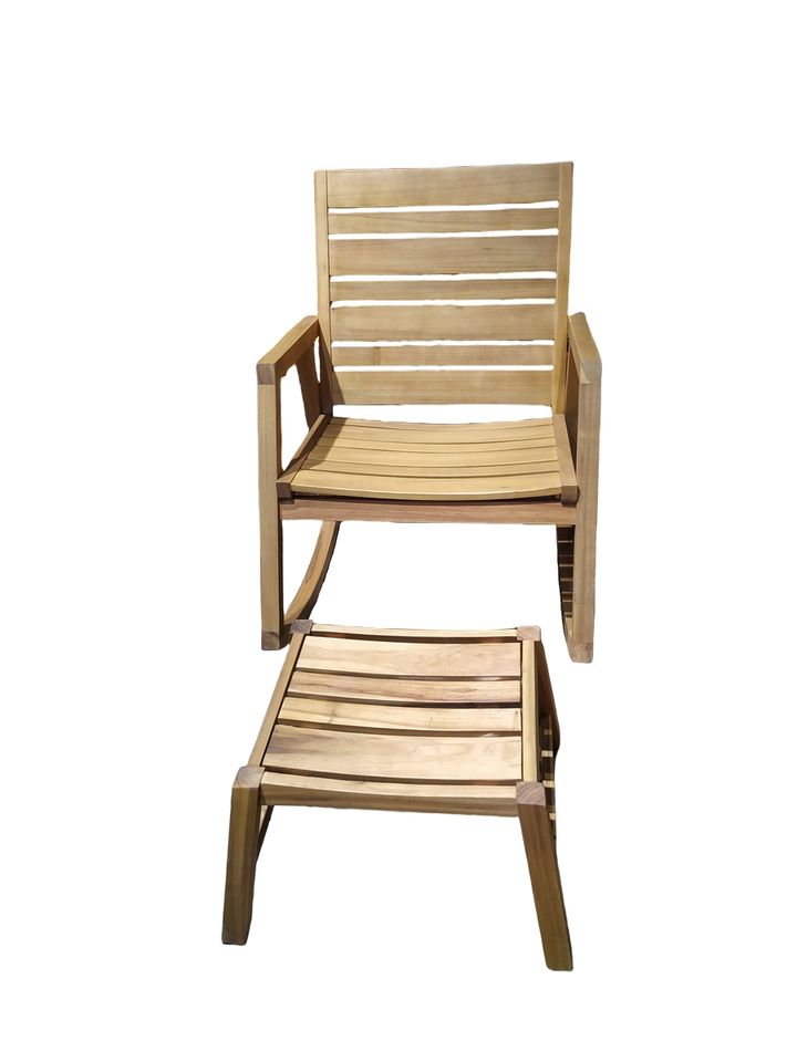 Outdoor Rustic Wooden Lounge Chair with Footrest-Durable Comfortable Solid Wood Patio/Garden Furniture for Living Room/Courtyard