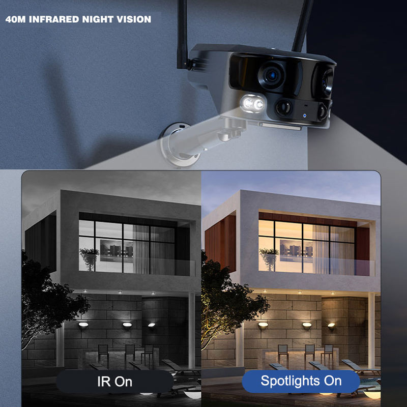 Outdoor Security CCTV Camera with 8.0MP Zoom 4G Dual Lens 180 Degree PTZ Solar Power Alarm Linkage