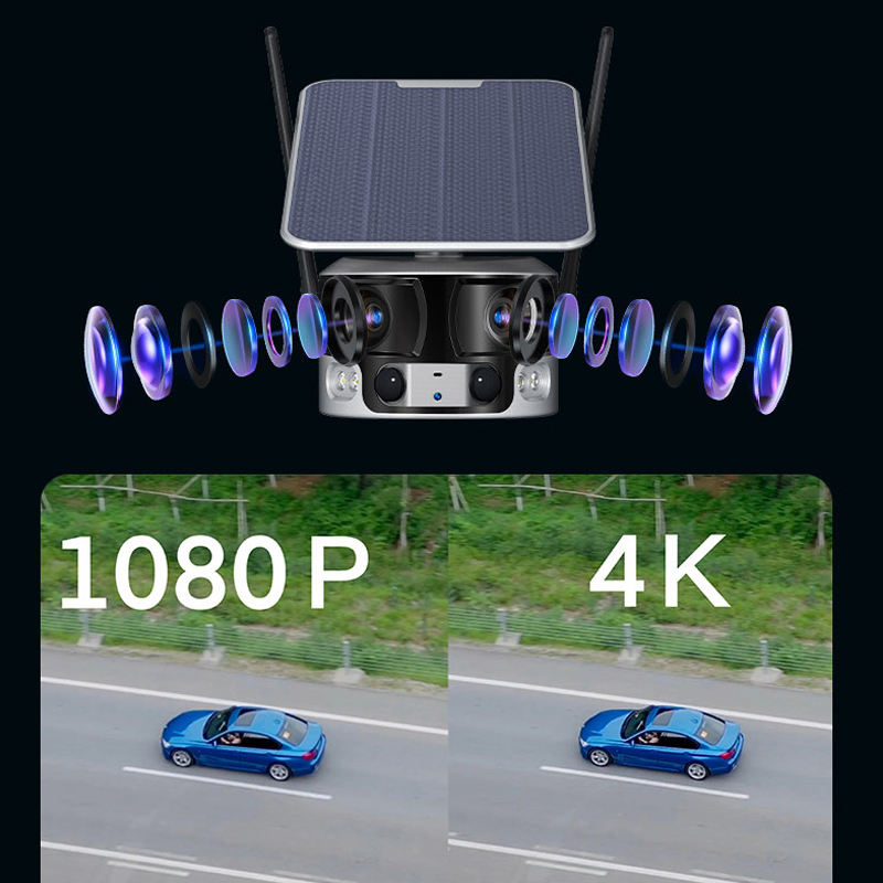 Outdoor Security Solar CCTV 8.0MP Zoom 4G Dual Lens Camera 180 Degree PTZ Alarm Linkage with WiFi and IP Network Connection