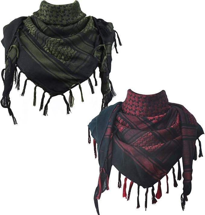 Outdoor Shemagh Keffiyeh Scarf 100% Cotton Tactical Kufiya for Men & Women, Arafat Inspired Head Wrap & Neck Cover
