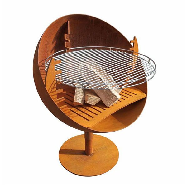 Outdoor Slanting Hemisphere Fire Pit & Grill-Anti-Rust Corten Steel, Charcoal & Wood Compatible