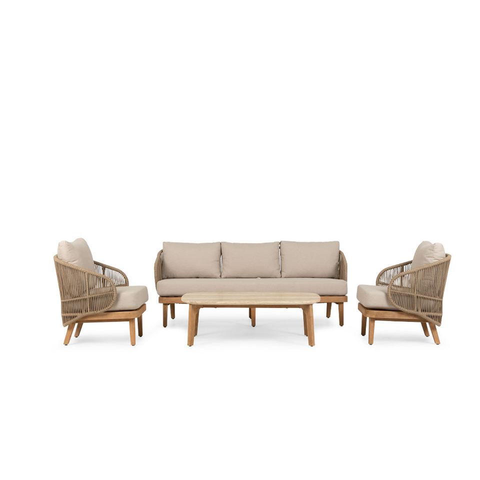 Product name:Outdoor Sofa Set Garden Furniture Teak With Rope And Cushion - Vanila