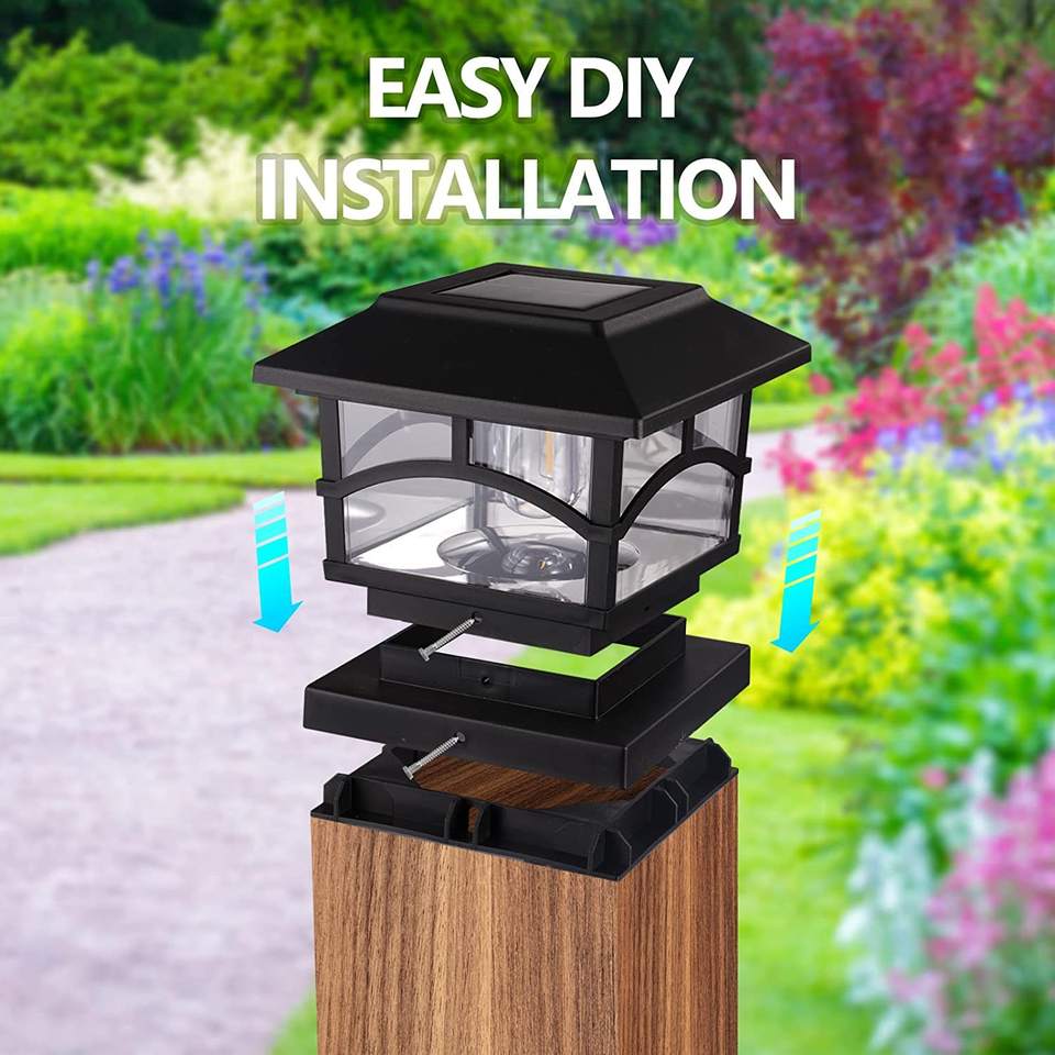 IP65 Waterproof Outdoor Solar LED Gate Post Light E27 Base Garden Decoration Lamp for Fence Column & Outdoor Spaces
