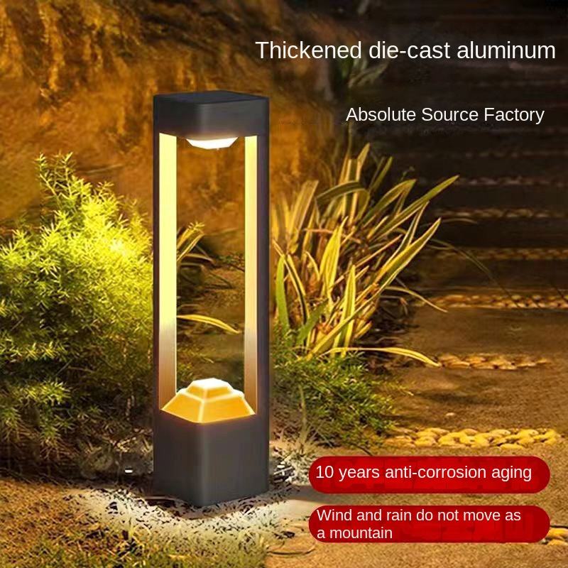 Outdoor Solar LED Lawn Bollard Lights IP65 Waterproof Garden and Courtyard Landscape Lighting Elegant Pillar Design