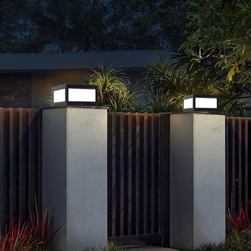 Outdoor Solar Powered Pillar Lamp Waterproof Villa Fence Patio Pathway Lawn E27 Bollard Light Outdoor Column Post IP54 Led Lamp