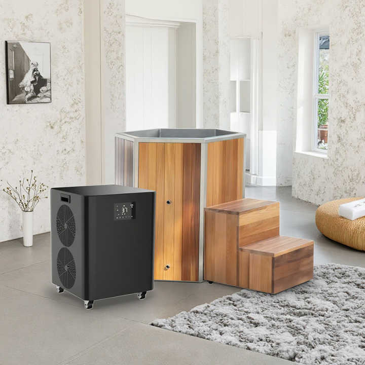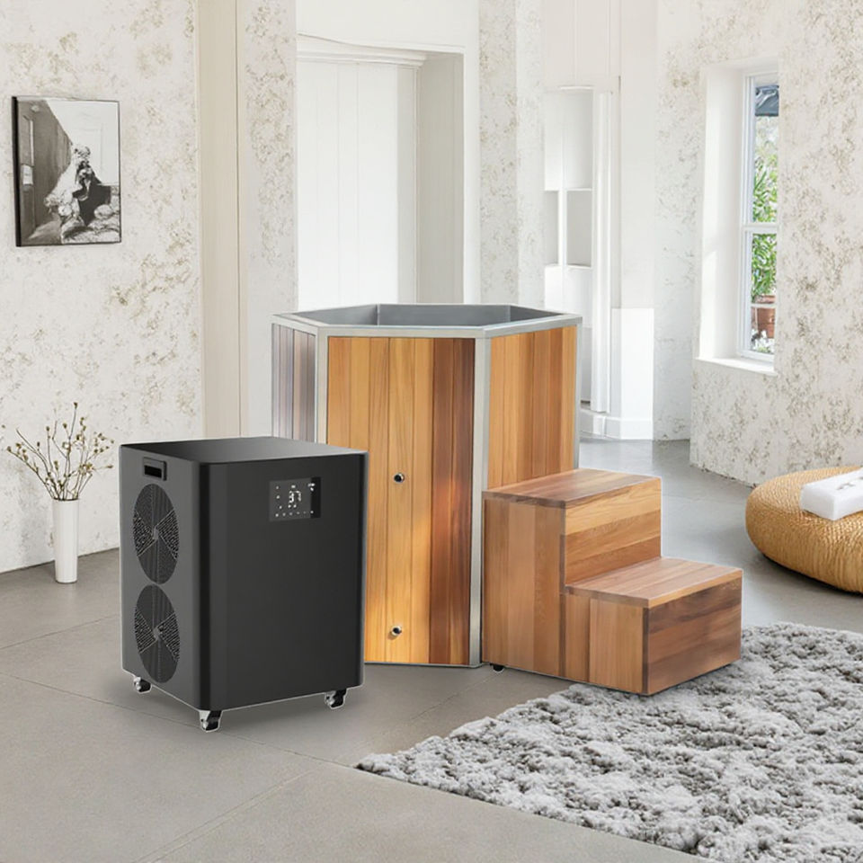 Outdoor Stainless Steel Modern Wooden Ice Bath Barrel Commercial Cold Plunge Tub with Water Chiller for Indoor Sauna Spa