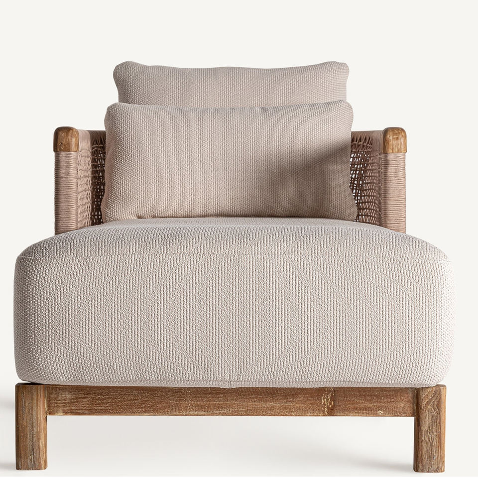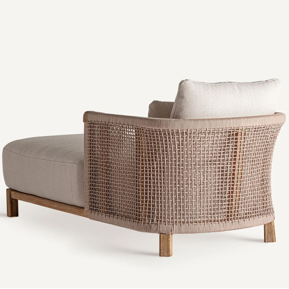 Product Name:Outdoor Sun Lounger Solid Teak Wood Equipped Rope With Cushion - Gino