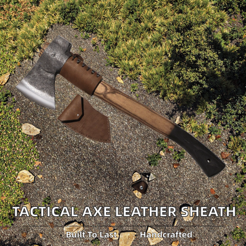Outdoor Tactical Camping Flat Backed Axe Head High Carbon Steel Ash Wood Handle DIY Leather Sheath 5.5 Cutting Edge Firewood