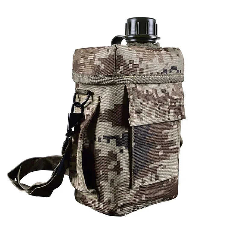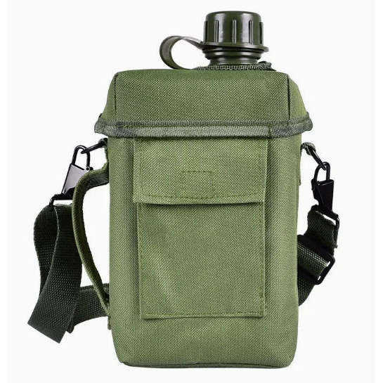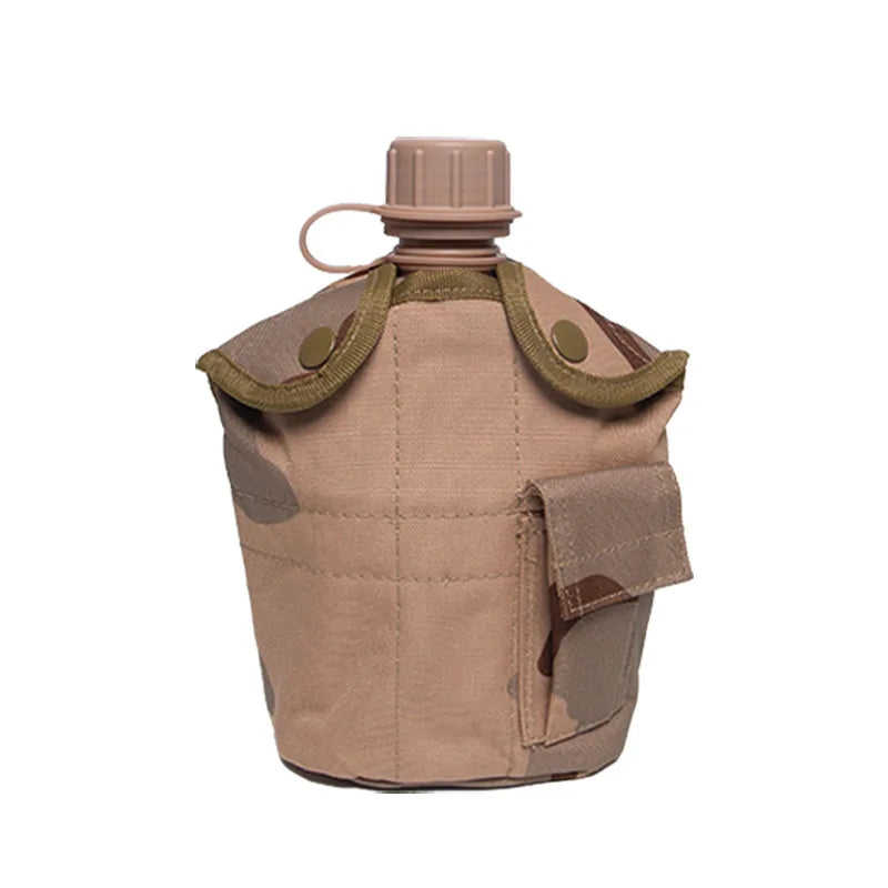 Outdoor Tactical Drinking Canteen 1L Capacity Plastic Bottle with Aluminum Cup for Camping Survival