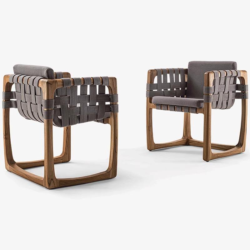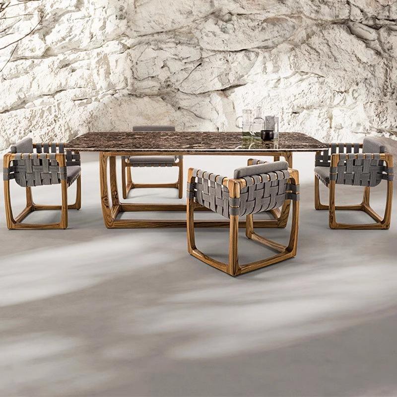Outdoor Teak Wood Dining Table Set With Woven Chairs For Garden Patio Balcony Courtyard Furniture Weather Resistant