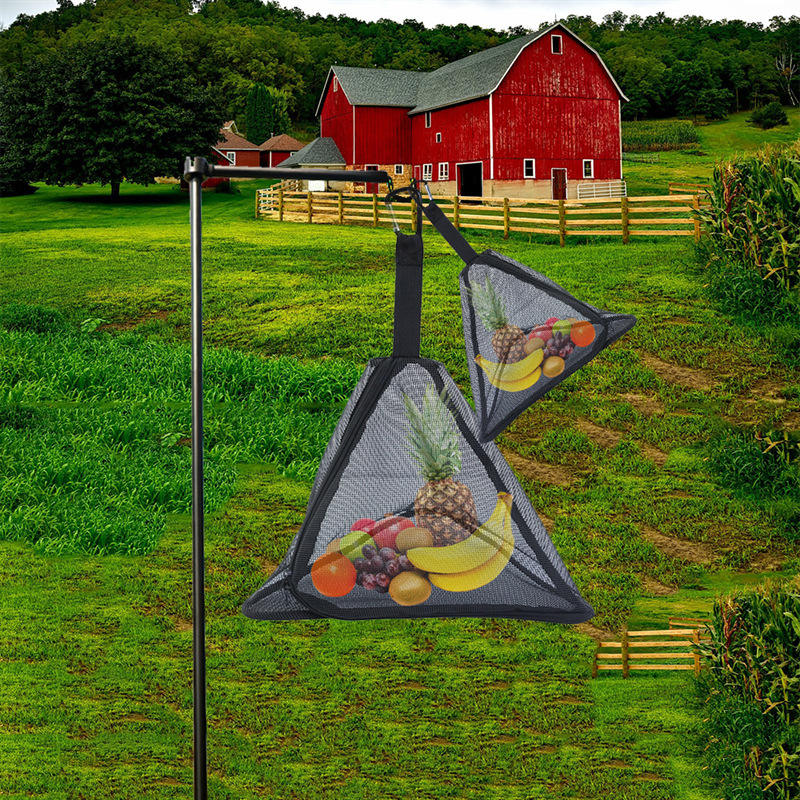 Outdoor Triangular Drying Net Bag Black Foldable Storage Basket Hook Type Portable Camping Hanging Net